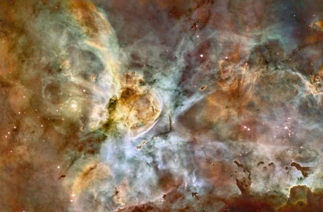«Мистическая гора» внутри туманности Киль. Эта космическая вершина высотой в три световых года состоит из пыли и газа и имеет признаки интенсивного звездообразования. Снимок 2010 года.