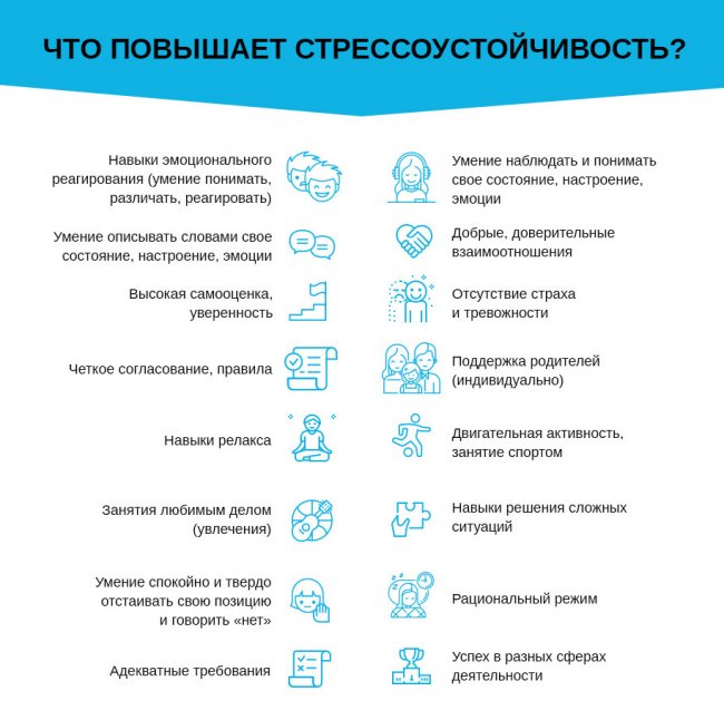 Владение навыками релакса, двигательная активность, занятие любимым делом и поддержка близких людей – все это повышает устойчивость к стрессу.