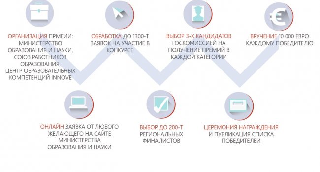 Система признания учителей года в Эстонии двухуровневая – региональная и республиканская. В результате государственная комиссия выбирает трех номинантов в каждой категории, а затем определяет победителей.