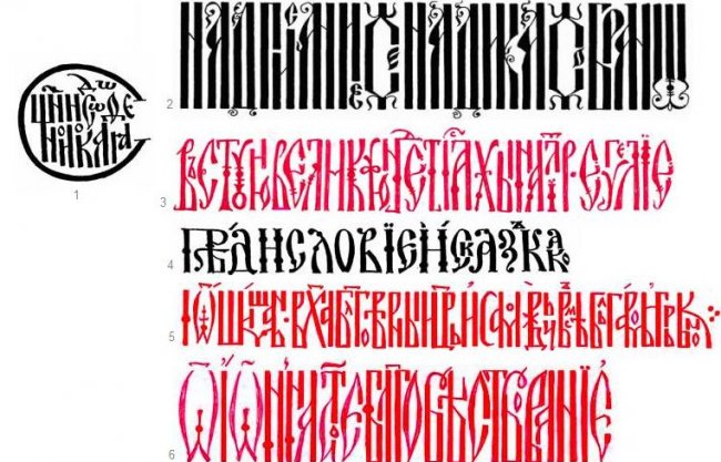 Современные «древнерусские» шрифты обычно подражают именно полууставу. И первые наши печатные книги тоже использовали полууставное начертание букв — только слова набирались раздельно.