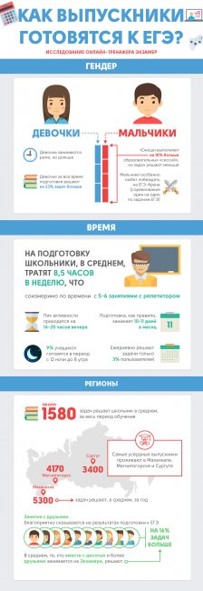 Специалисты онлайн-тренажера для подготовки к ЕГЭ «Экзамер» провели исследование среди четырех тысяч пользователей, в рамках которого выявили гендерные особенности подготовки к единому государственному экзамену, составили топ вузов, в которые мечтают поступить выпускники из столичных и региональных школ и узнали, сколько времени, в среднем, уходит на подготовку к ЕГЭ.