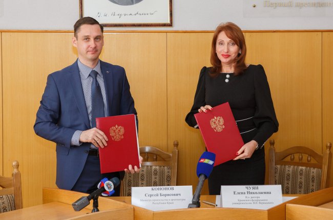 В Крымском федеральном университете им. В. И. Вернадского состоялось торжественное подписание соглашения о сотрудничестве между КФУ и Министерством строительства и архитектуры Республики Крым, сообщает пресс-служба вуза.