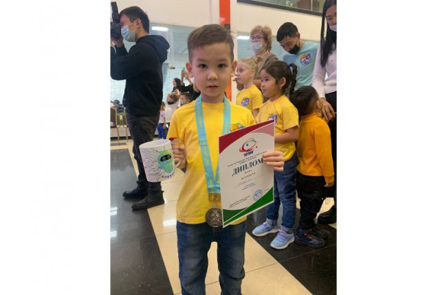 В первом туре этого соревнования участники продемонстрировали своё пространственное мышление, умение на время собрать лабиринт для робота-мыши по заданной схеме. А во втором туре они составили алгоритм движения, то есть программировали робота-мышь на прохождение от старта до финиша. По итогам соревнования Али Сапаров (5 лет) занял II место, награждён дипломом и медалью. Руководитель участников соревнования - Фархад Алиятович Жаксыбаев, учитель по робототехнике яслей-сада.