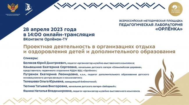 28 апреля в 14:00 по московскому времени в онлайн-формате состоится круглый стол «Проектная деятельность в организациях отдыха и оздоровления детей и дополнительного образования». Педагоги Всероссийского детского центра (ВДЦ) «Орленок» расскажут о возможностях, направлениях, эффективных технологиях проектной деятельности и роли наставника в работе с детьми.
