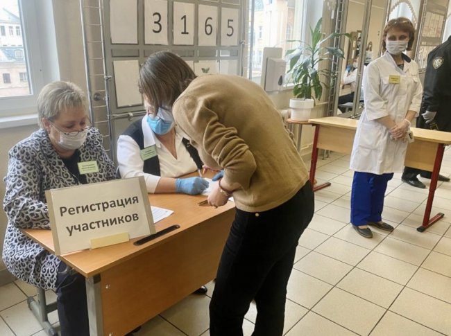 Для взрослых все организовано так же серьезно, как и во время настоящей аттестации. Начинается все еще до входа в аудитории: сначала проходим рамки металлоискателей, обязательную термометрию. Дань времени – все организаторы и общественные наблюдатели в масках и перчатках, для участников тоже приготовлены такие комплекты.